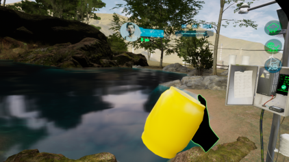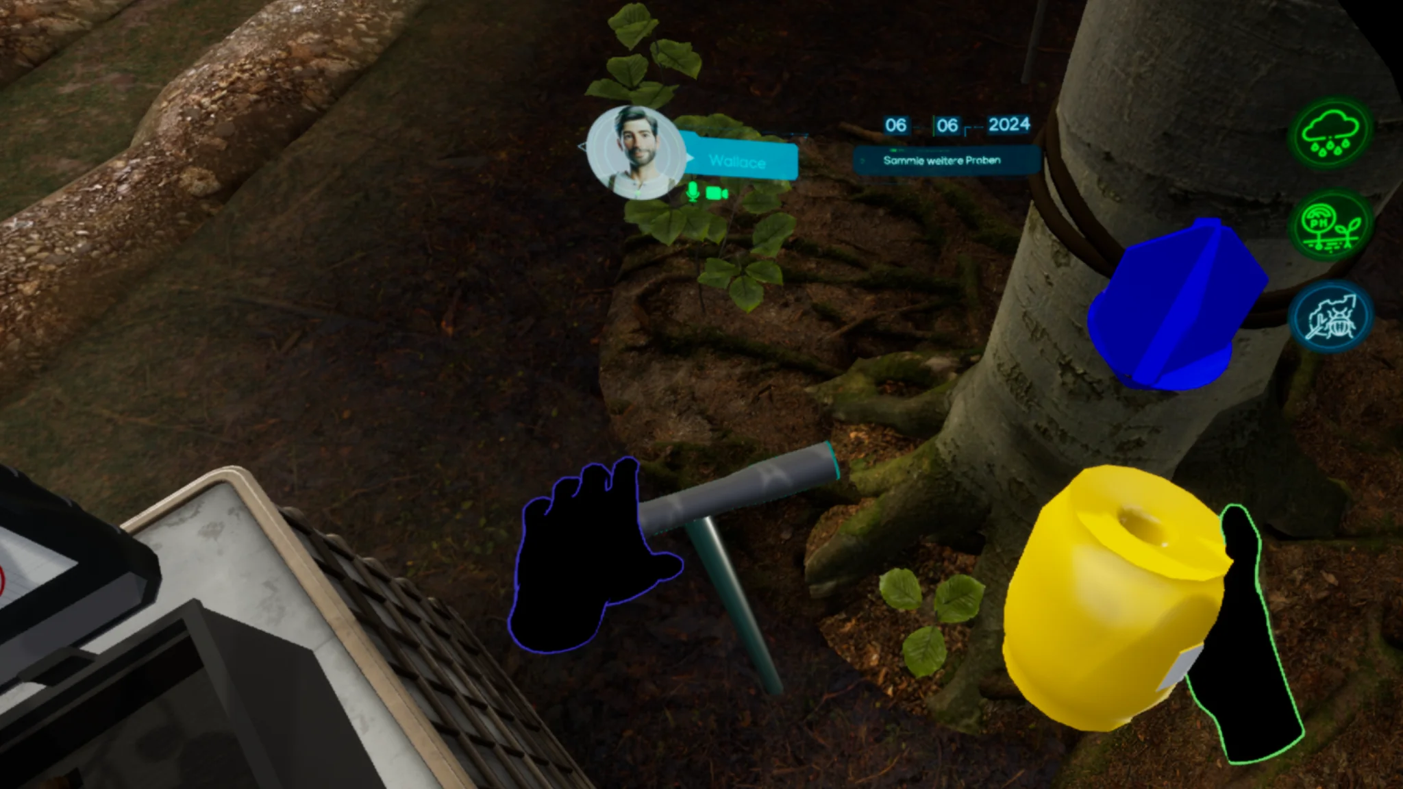 ClimateChangeVR nutzt Handtracking für die Steuerung, wodurch keine Controller benötigt werden. Die äußeren Kameras der VR-Brille erkennen die Handbewegungen der Nutzenden und übertragen sie in die VR-Welt.