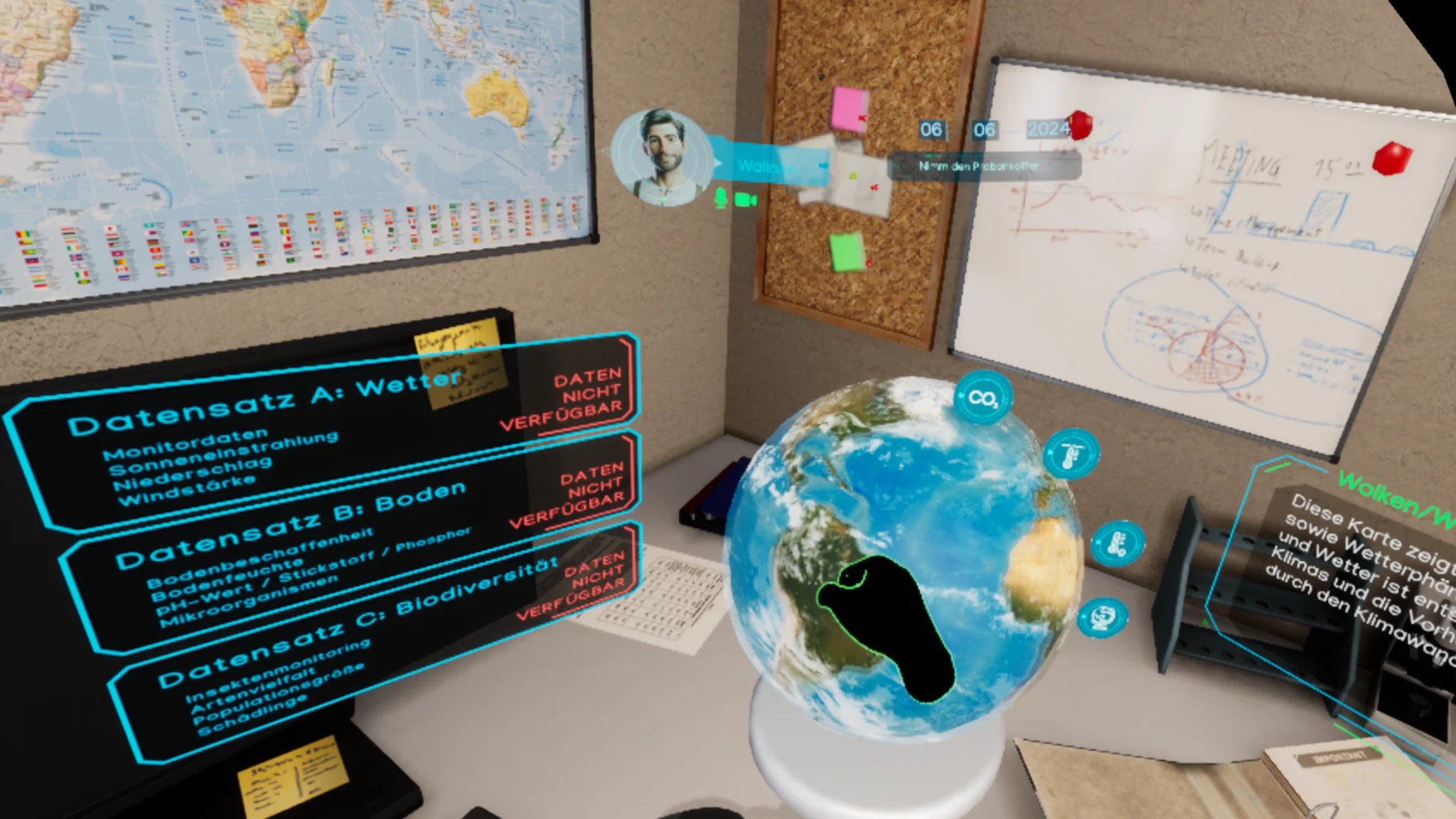 ClimateChangeVR ist eine interaktive Virtual Reality (VR) Erfahrung über den Klimawandel, in dem die spielenden Personen selbst zu Forschenden werden und spielerisch Aufgaben mit Wissenschaftsbezug lösen.
